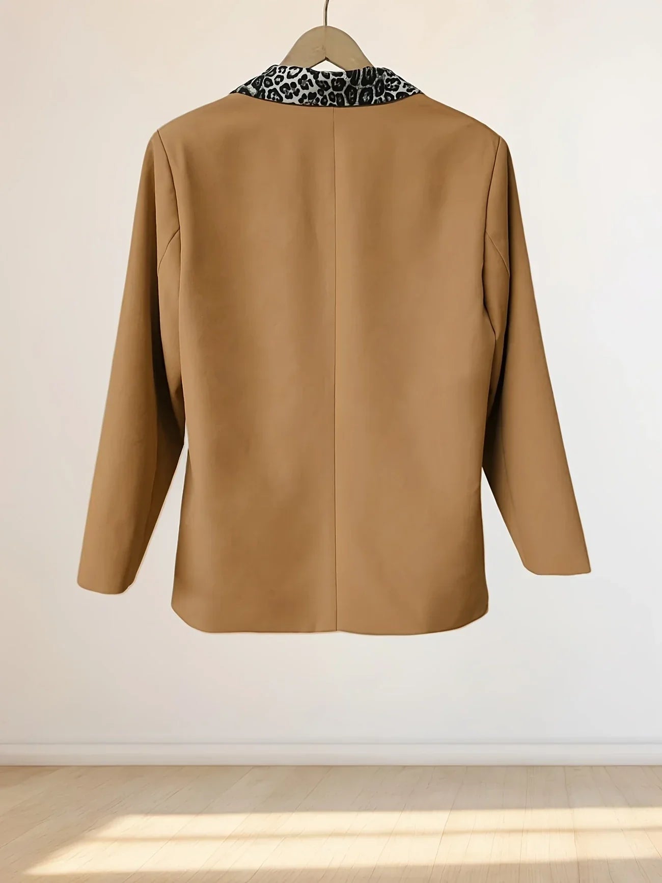 Perfect for accessorizing an autumn outfit. It is adorned with a discreet black and white leopard pattern on the turn-down collar and two pockets.With its long, fitted cut and practical pockets, this blazer will give you a stylish and chic look. Its subtle leopard print and dark orange color add a modern touch to your look.
